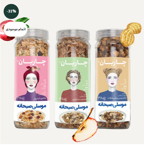 موسلی بادام زمینی و شیرشکلات شیشهای چاربان