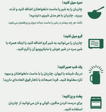برای صبحانه یا میان وعده: ۳۰ گرم (حدود ۴ قاشق غذاخوری سرخالی) از محصول را همراه با شیر (سرد یا گرم) مخلوط و میل کنید.