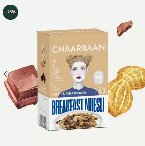 موسلی بادام زمینی و شیرشکلات باکسی چاربان