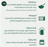 صبحانه و میان وعده: ۳۰ گرم (حدود ۴ قاشق غذاخوری سرخالی) از محصول را همراه با شیر (سرد یا گرم) مخلوط و میل کنید.